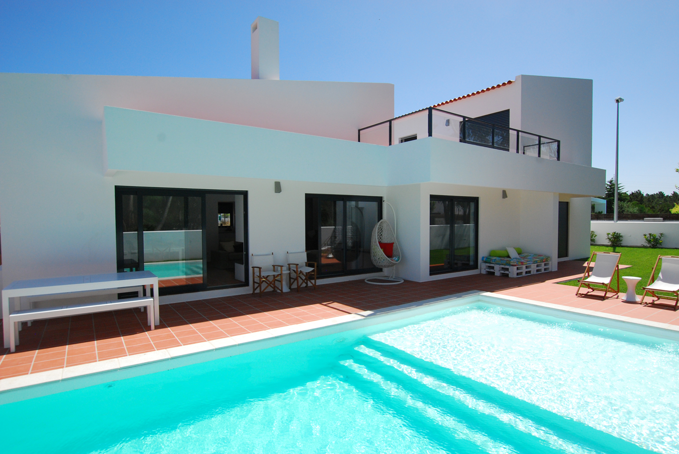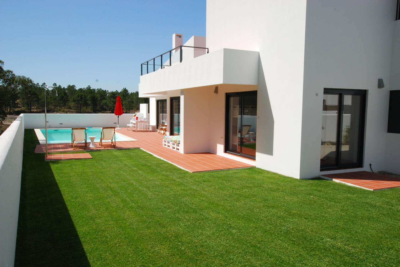 A Villa 64 está inserida numa paisagem de pinheiros e campos agrícolas.