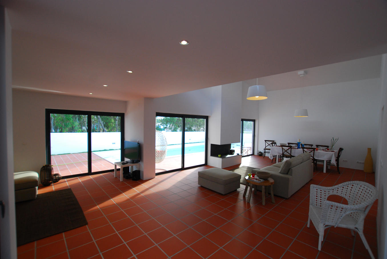 sala de estar, sala de jantar com lareira, grande terraço, páteo interior, cozinha totalmente