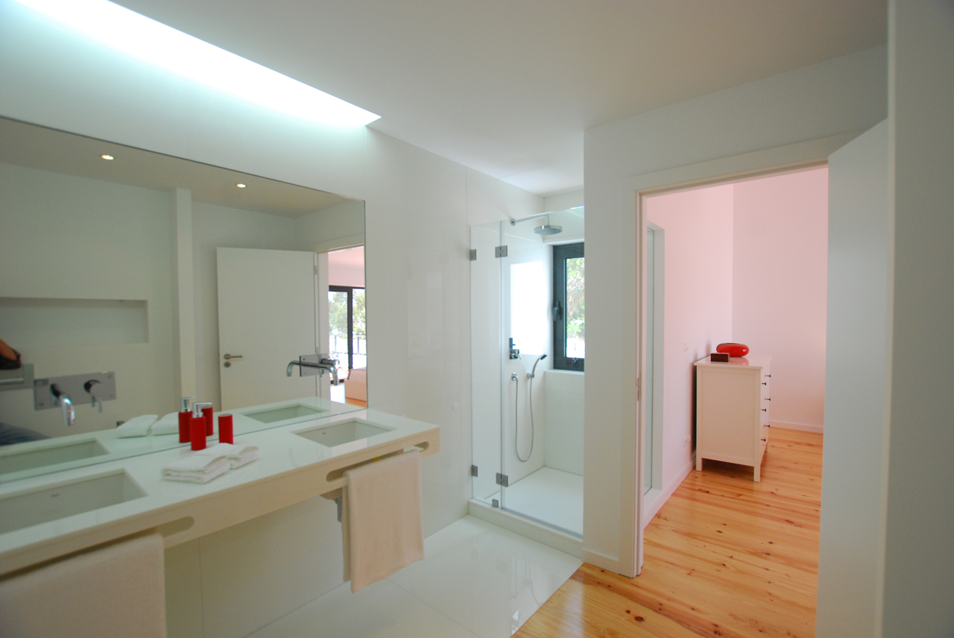 Possui dois quartos com casa de banho, cada um em suite, outros dois quartos servidos por uma casa de banho,